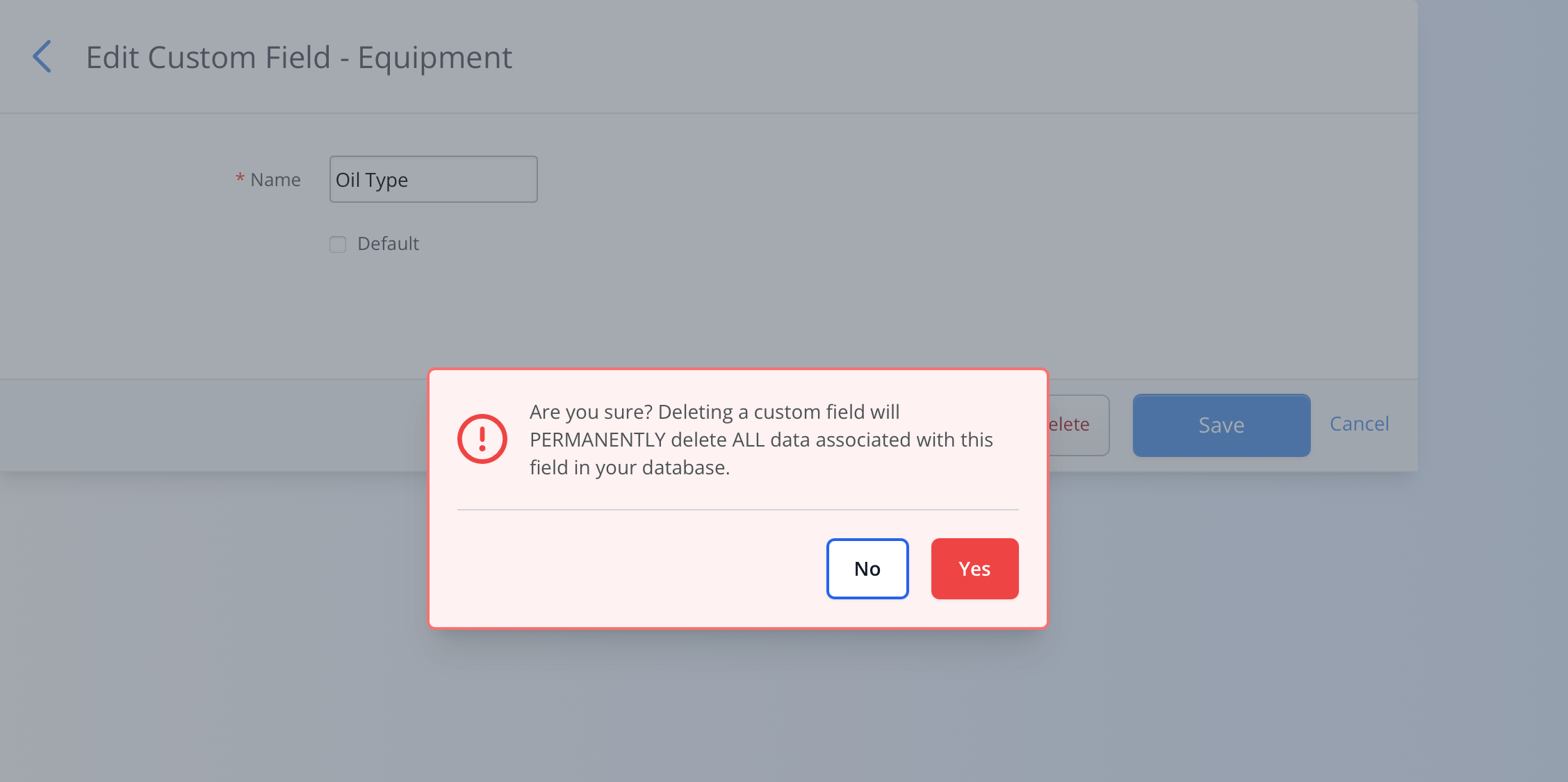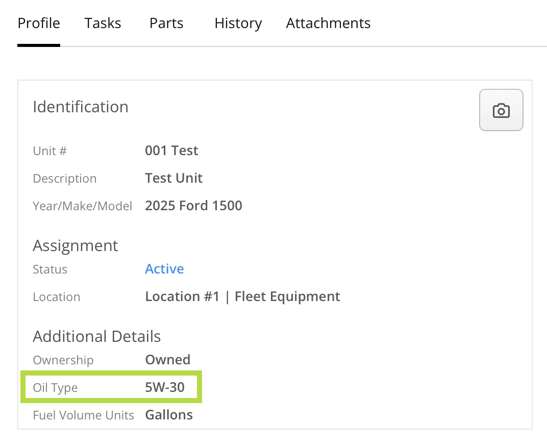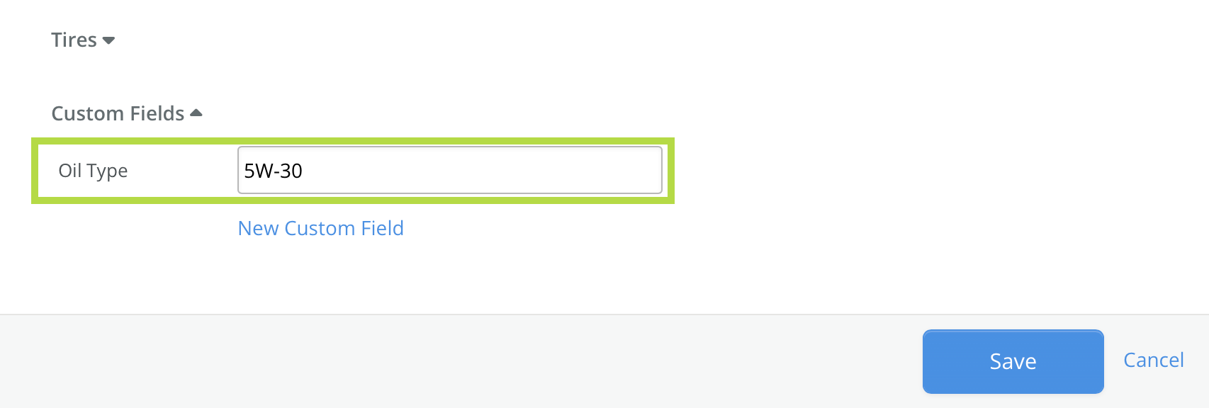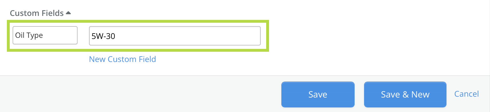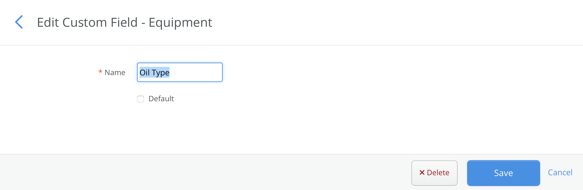 Editing the Name field updates the custom label system-wide. For example, changing “Oil Type” to “Engine Type” updates all instances accordingly.