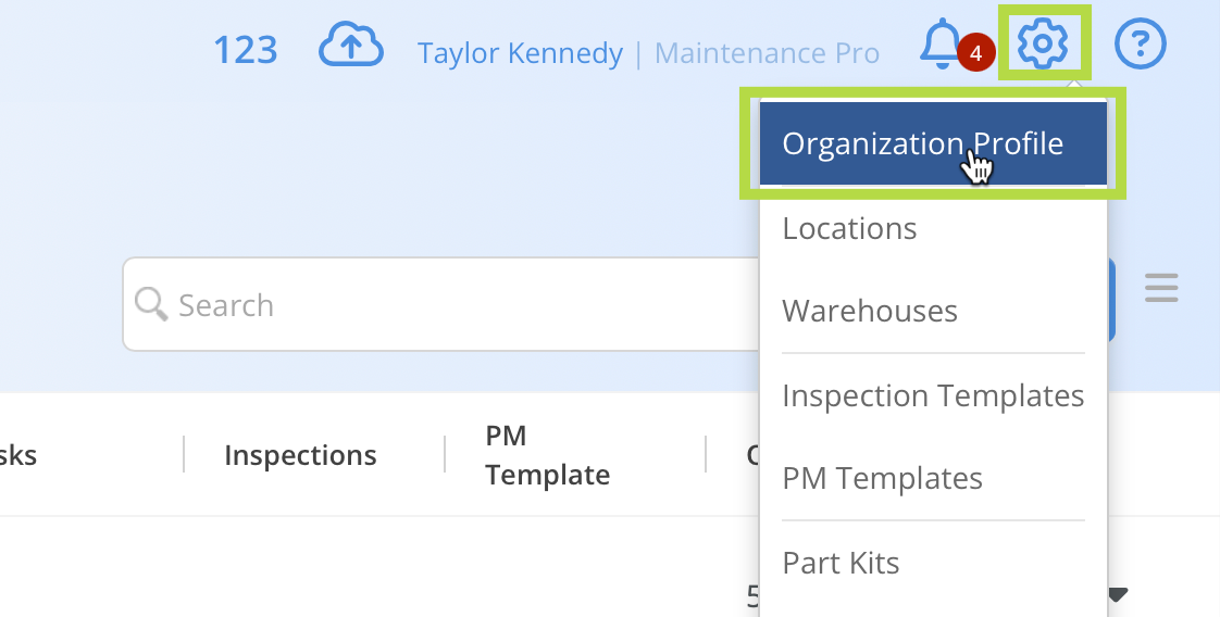 To manage all Custom Fields, click the gear icon in the top-right corner and select Organization Profile.
