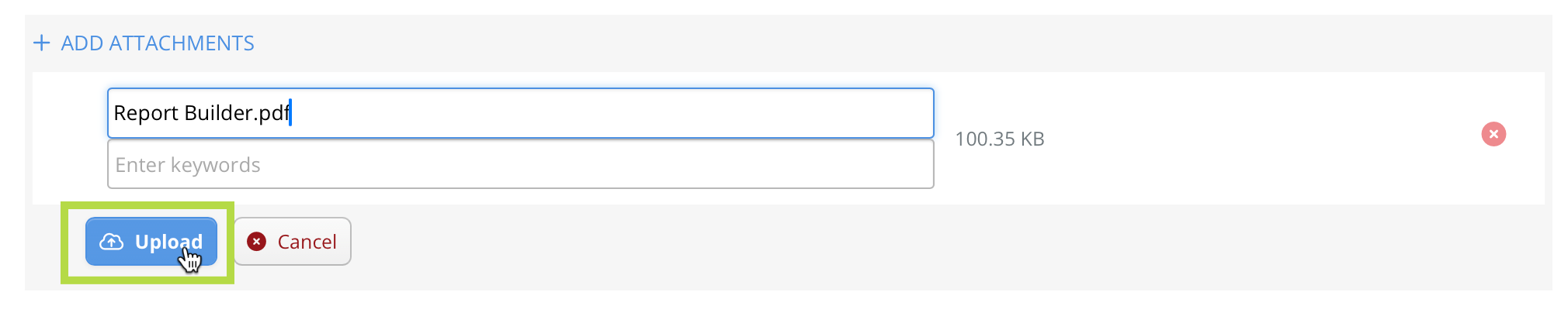 Once uploaded, the file name appears in blue. Clicking the file name opens and displays the attachment.
