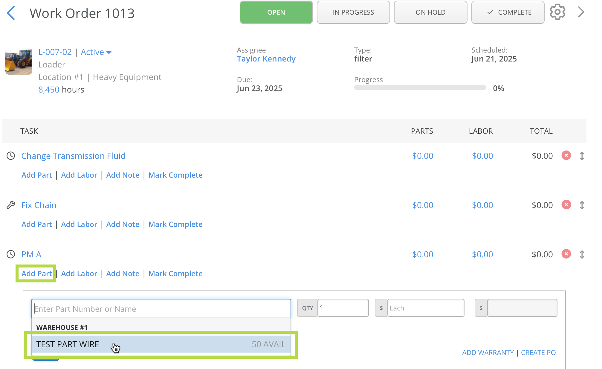 Add Parts To Work Orders
