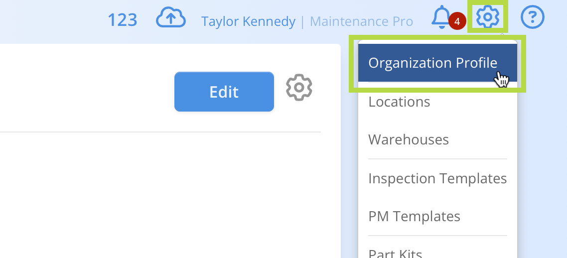 To access the Organization Profile, click the gear icon in the top-right corner and select Organization Profile from the menu.