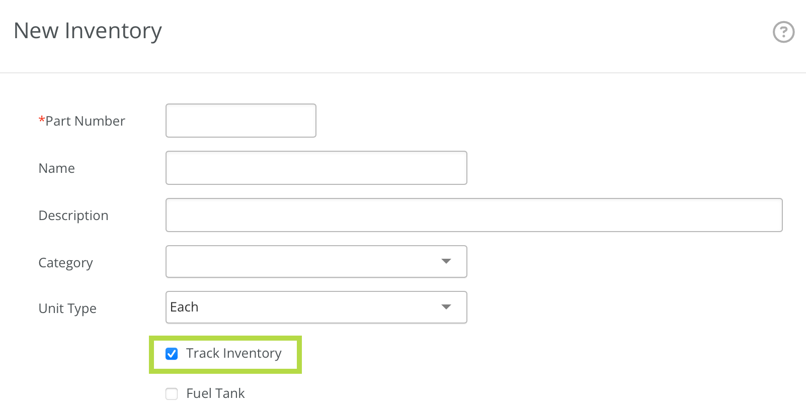 When adding a new part, the option to enable Inventory Tracking is available. When enabled, the system tracks the part’s quantity to monitor stock levels.