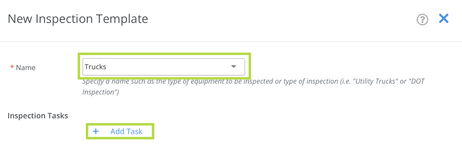 An Inspection Template can be generated by clicking the "New" button.
