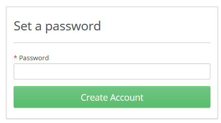 No specific password requirements are enforced (such as uppercase, lowercase, numbers, symbols, or length). After entering a password, click Create Account.